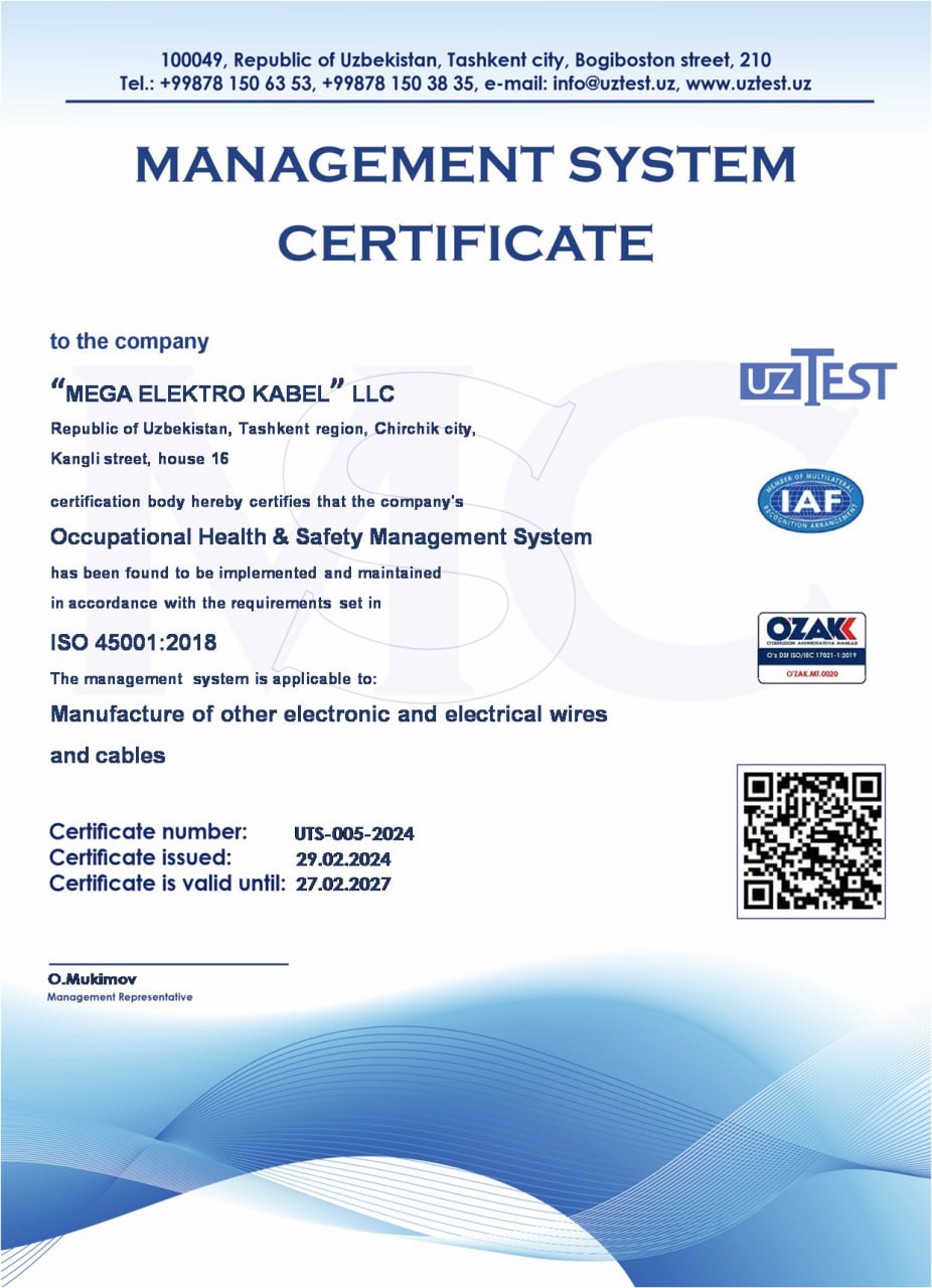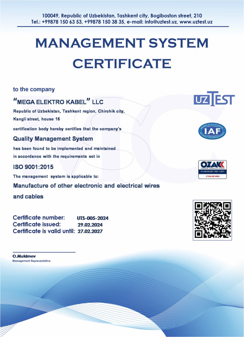 В мае 2024 года компания «Mega Elektro Kabel» успешно прошла дополнительную сертификацию, получив международные сертификаты, подтверждающие ее приверженность высоким стандартам. 🔹 ISO 14001 – стандарт, удостоверяющий соблюдение высоких экологических норм...